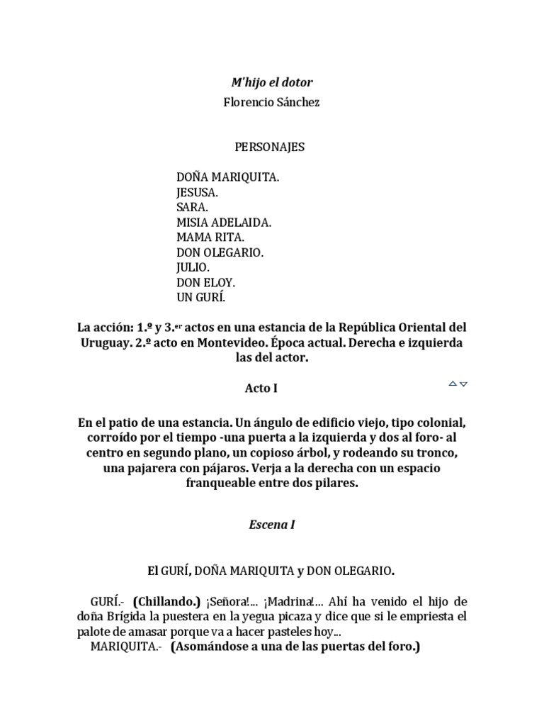 M'hijo El Dotor Preguntas Y Respuestas. Fue la obra por la que adquirió gran reconocimiento. Puertas adentro, la gente honesta, cédulas de san juan, la gringa, canillita, la pobre gente, barranca, abajo, mano santa, los muertos, en familia, el desalojo, el pasado, la tigra, moneda falsa.