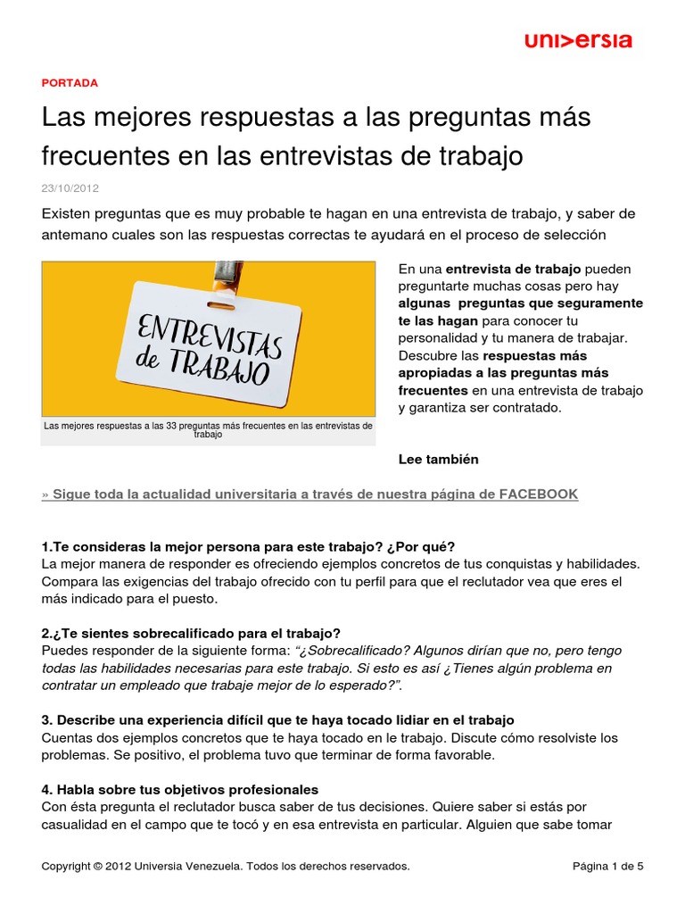Cuales Son Las Preguntas Y Respuestas En Una Entrevista De Trabajo Parte 1 El124 from el124.com 1 preguntas y respuestas en una entrevista de trabajo. Preguntas y respuestas de una entrevista de trabajo ¿qué es lo que te gusta o no de tu actual trabajo? Turno de preguntas y respuestas.