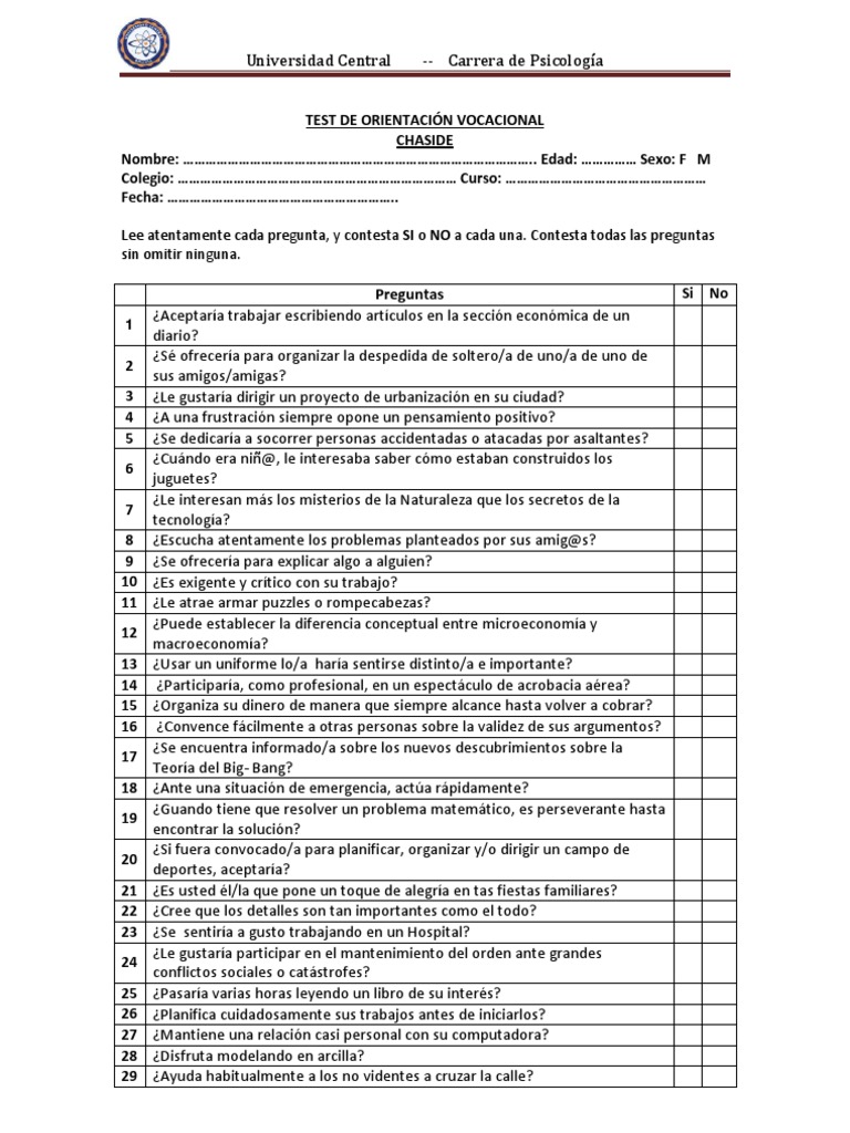 Test De Orientacion Vocacional Lectura Proceso Prueba Evaluacion from imgv2-1-f.scribdassets.com Evalúa tus preferencias en diecisiete campos profesionales genéricos, que engloban la práctica totalidad de las profesiones existentes hoy día, tanto las que requieren estudios superiores como las de niveles medios y básicos. Al presiona el botón iniciar cuestionario se iniciará el mismo. (19) cooperación (3) cortometrajes (4) cuestionarios (2) día de la mujer (5).