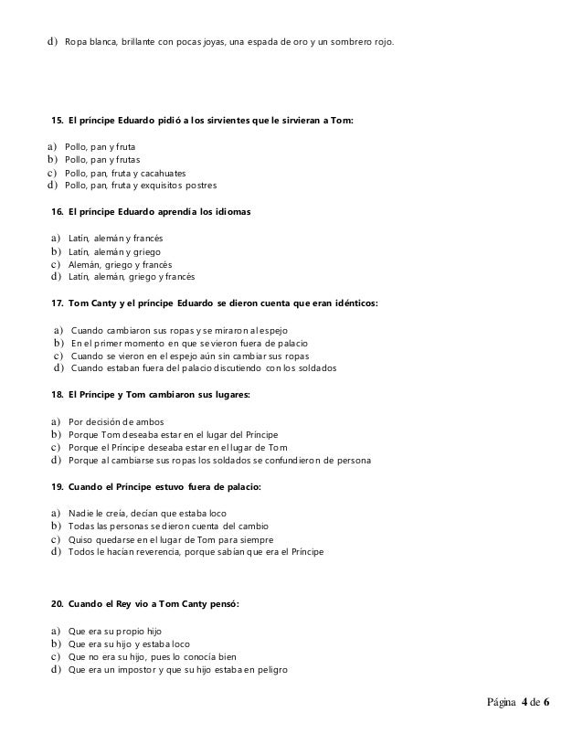 Preguntas De Prueba Del Libro El Principe Y El Mendigo