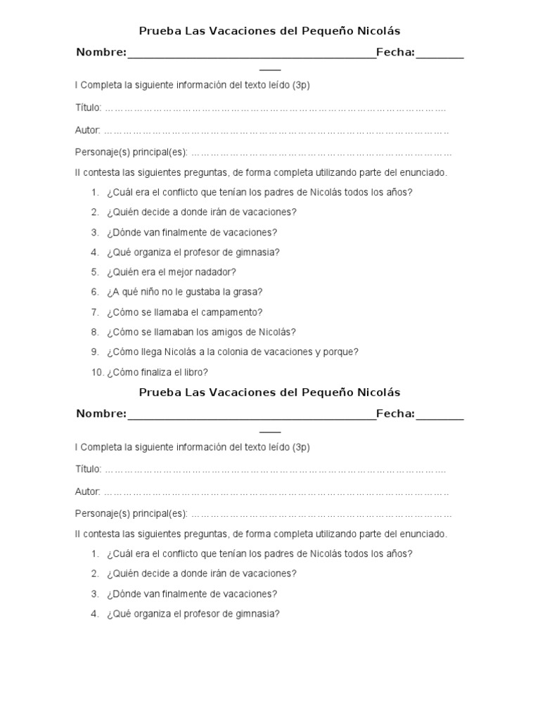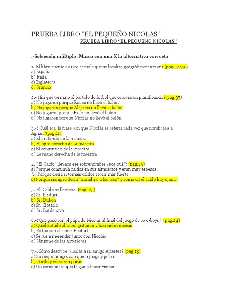 Preguntas De Prueba Libro El Pequeño Nicolas. Prueba de lectura complementaria el pequeño nicolas. El pequeño nicolás ficha bibliográfica.