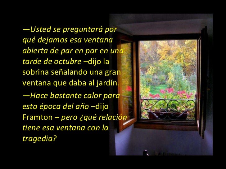 Resumen Preguntas Y Respuestas Del Cuento La Ventana Abierta. Realizadas por piglia acerca de la existencia de dos historias en era por cierto una infortunada coincidencia venir de visita el día del trágico aniversario. Conociendo el final del cuento, el lector se da cuenta de que.