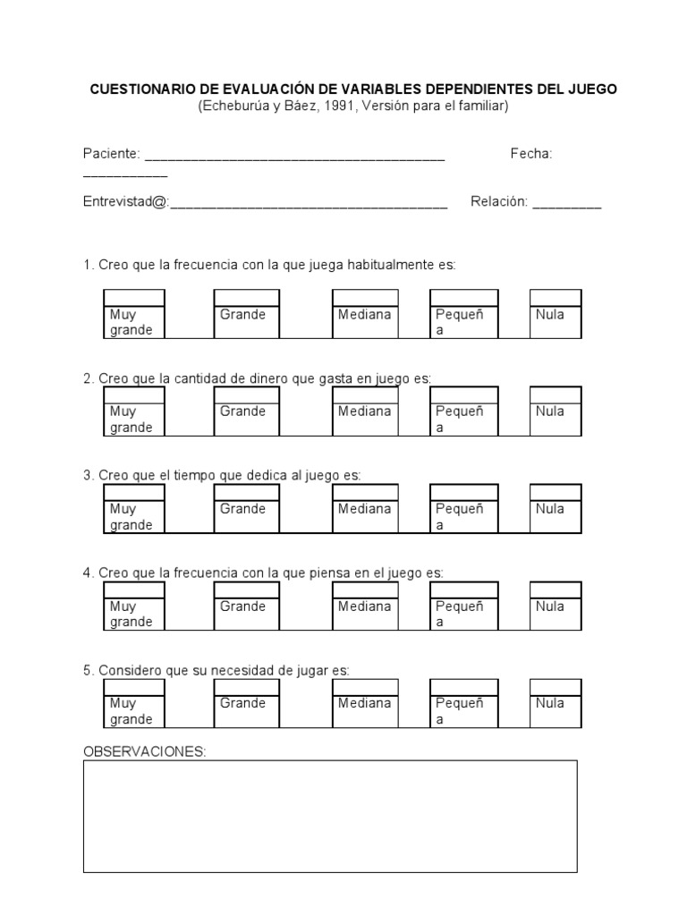 Cuestionarios Jugar. Aunque a menudo están diseñados para poder realizar un análisis estadístico de las respuestas, no es siempre así. Cuestionarios, inventarios y escalas para evaluar el juego patológico.