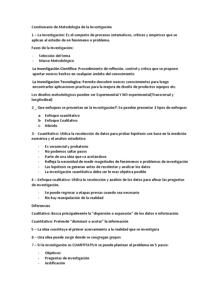 Cuestionarios Metodologia De La Investigacion. En un proceso de investigación, la metodología es una de las etapas en que se divide la realización de un trabajo. 0 ratings0% found this document useful (0 votes).
