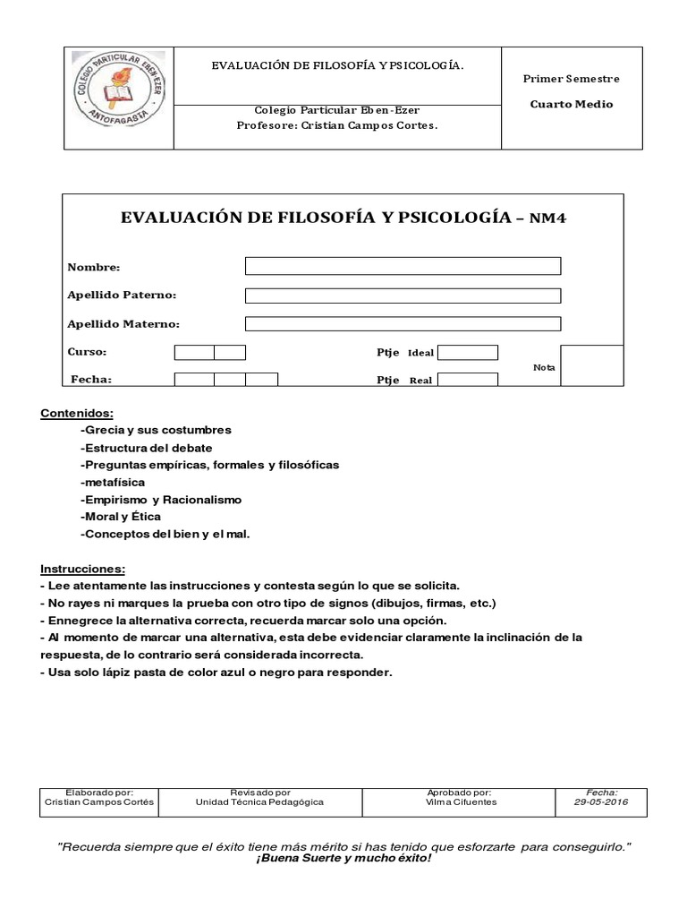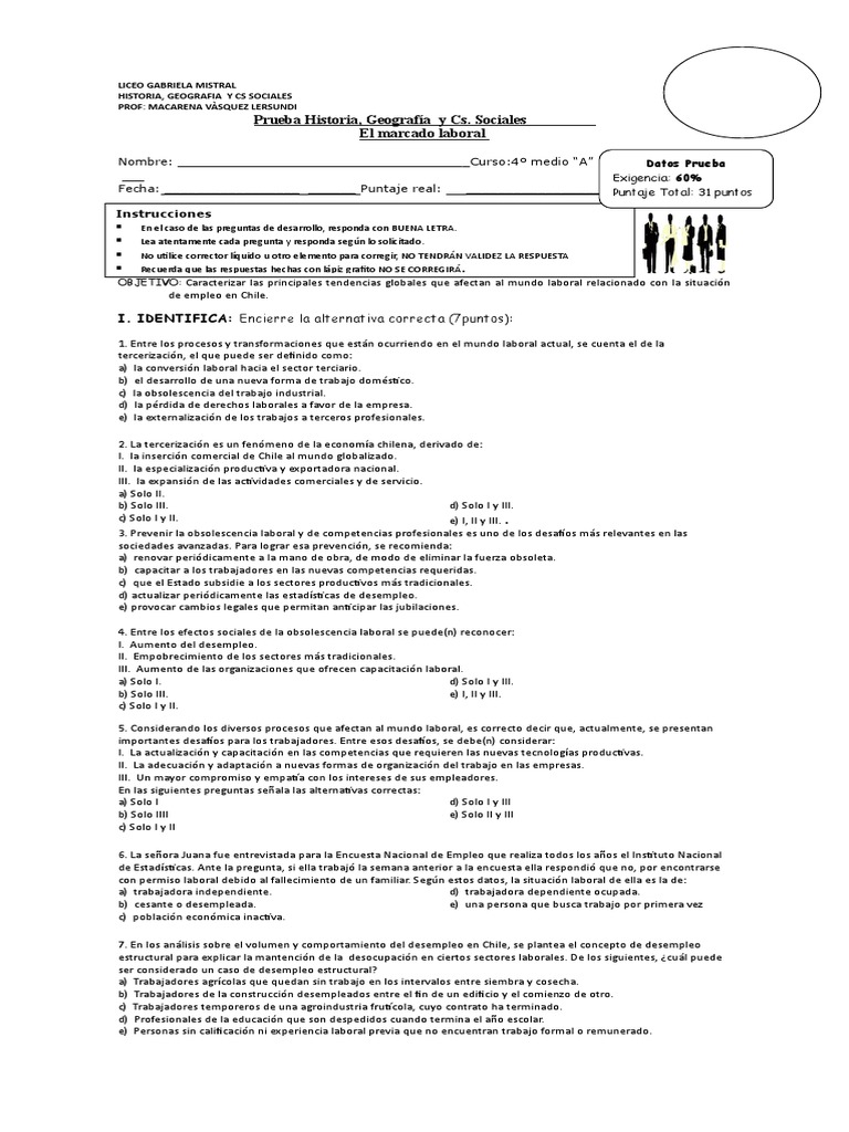 Preguntas Prueba 4To Medio Laboral. Página principal ensayos prueba física 4 to medio. Documento para elaboración de una evaluación.