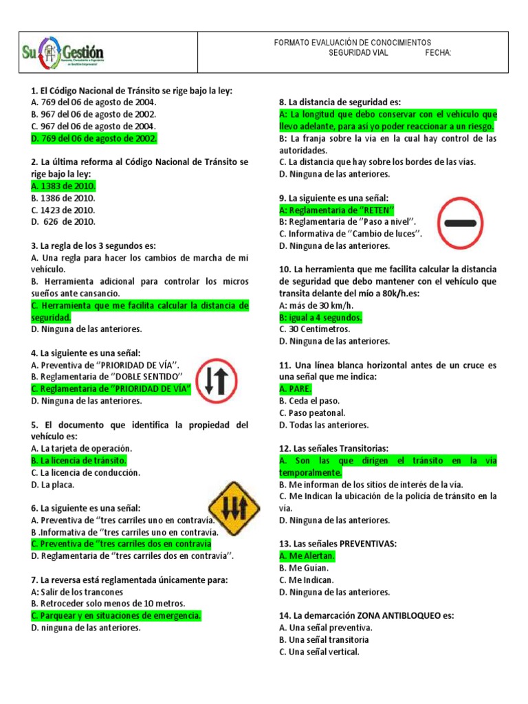 Señales Examen Preguntas Y Respuestas Para Sacar Licencia De Conducir
