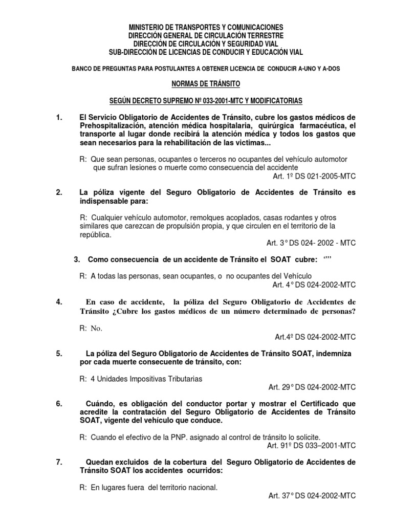 Preguntas Examen De Reglas Mtc. Del país, puedes buscar el centro de evaluación correspondiente a tu provincia/región en la siguiente tabla basada en la última lista publicada por el mtc el 10/05/2019 El examen consiste en 40 preguntas y dura un total de 40 minutos.