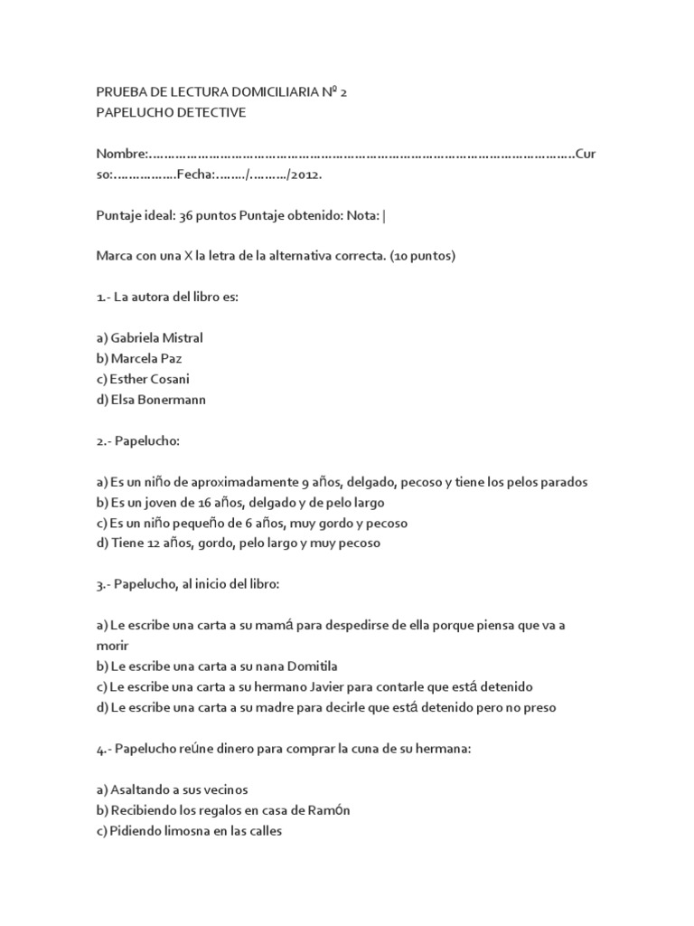 Prueba 1 Papelucho Y El Marciano from imgv2-1-f.scribdassets.com Marcar los foros como leídos. Luis marin camila rojas marcela paz nació en santiago de chile el 28 de febrero 1902 en una acomodada familia, la segunda de los ocho hijos de francisco huneeus gana y maría teresa salas subercaseaux.3 desde pequeña se refugió en la soledad y la imaginación Las preguntas y respuestas que mas han realizado a nuestra tirada de tarot, aqui seguro encontrar´s lo que quieres saber.