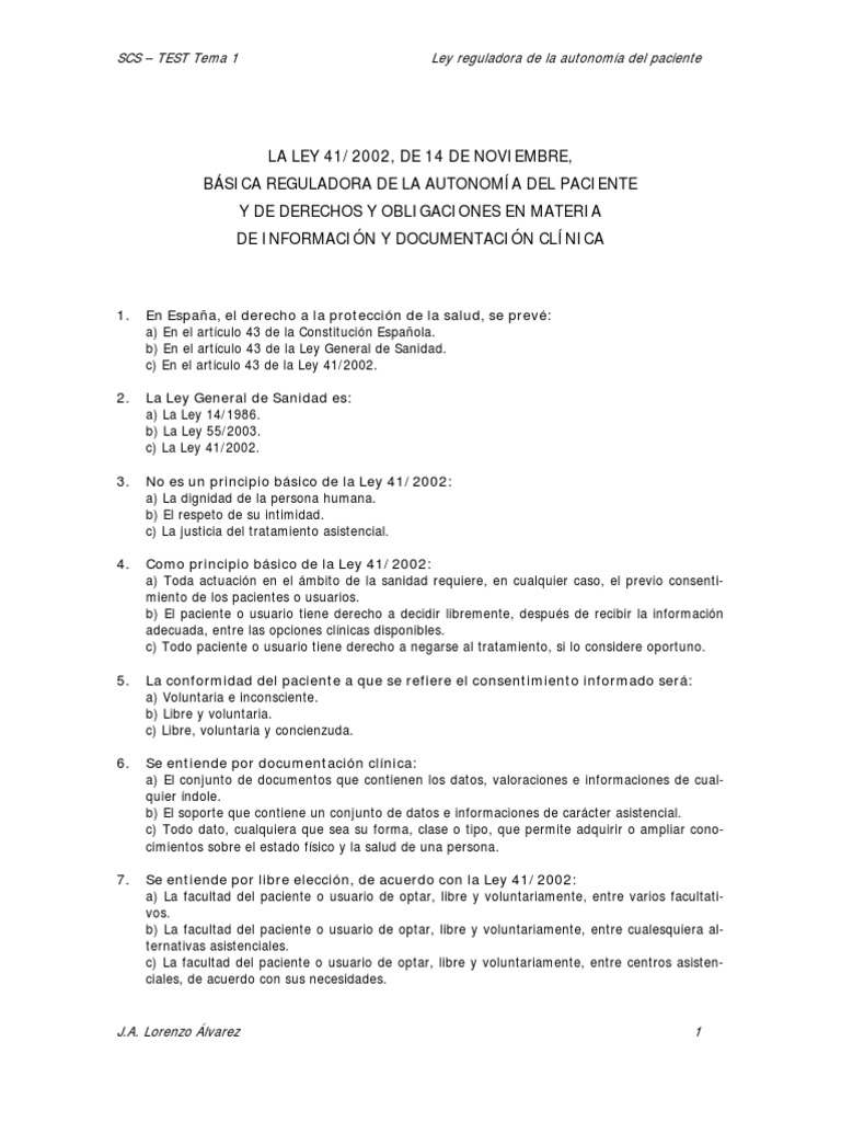 Preguntas De Examen De La Ley 41 2002. Número 3 del artículo 15 redactado por el apartado uno de la disposición final cuarta de la ley 19/2015, de 13 de julio, de medidas de reforma. 274, de 15 de noviembre de 2002.
