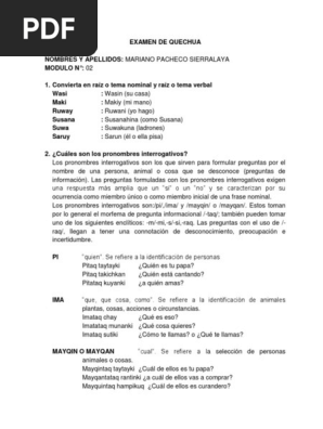Preguntas De Examen De Quechua. Mariano pacheco sierralaya modulo n°: A continuación tienes modelos de examen y bancos de preguntas en quechua, ahora te toca resolverlas y ver tu nivel de aprendizaje.