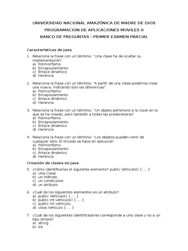 Preguntas De Examen Java. * quienes fueron sus desarrolladores y en qué año surgió? Declare las clases derivadas admi ni st r at i vo y consul t or de la clase empl eado.