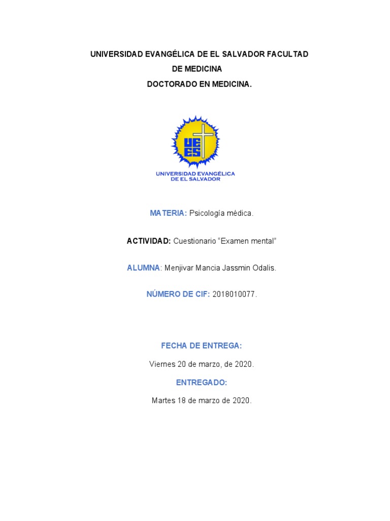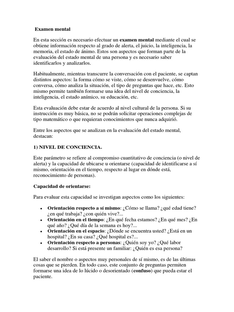 Preguntas De Examen Mental. Base de preguntas para realizar un examen mental. Cuestionario preguntas sobre conciencia 1.