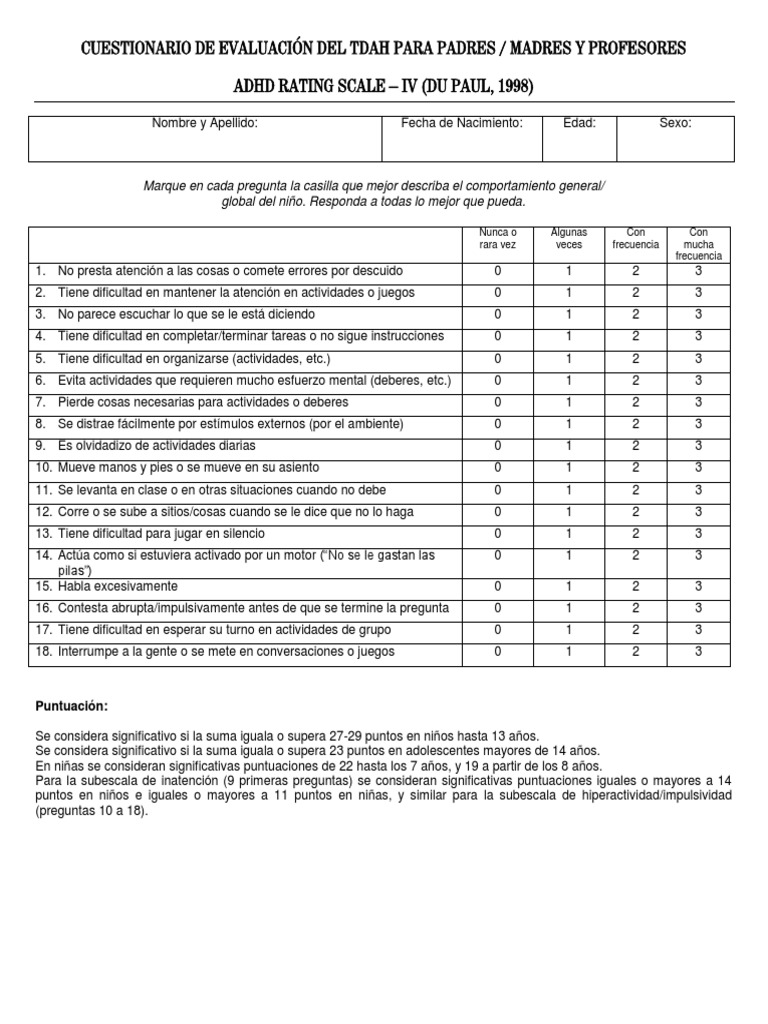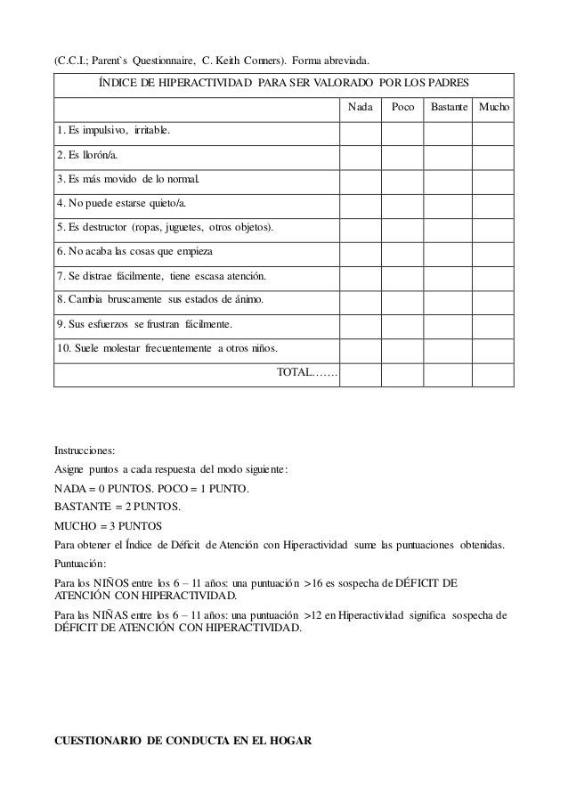 Documents similar to cuestionarios tdah. Un cuestionario es aquel que plantea una serie de preguntas para extraer determinada información. Concepto y significado de cuestionario: Se considera un niño heperactivo aquel que este diagnosticado con tdah.