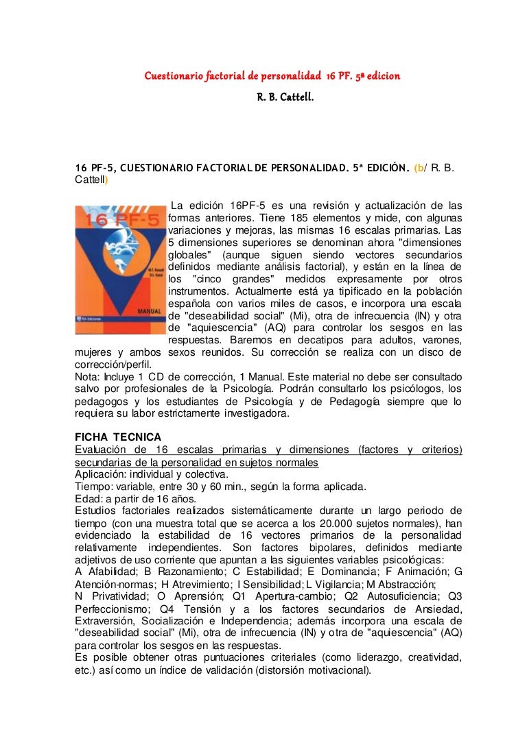Cuestionario 16 Pf 5. Cuestionario 16 pf quinta edición. Cuestionario de personalidad de cattell.