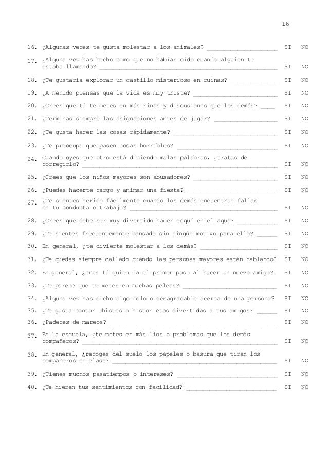 Translations of the phrase cuestionarios de personalidad from spanish to english and examples translation of cuestionarios de personalidad in english. Descubre tu personalidad escondida, realidades ocultas y más de una sorpresa resolviendo estos. El cuestionario factorial de la personalidad o 16 pf es uno de los instrumentos de medida de la personalidad más conocidos y utilizados a lo largo de la joven historia de la psicología. Un cuestionario es una herramienta de investigación que consiste en una serie de preguntas y otras indicaciones con el propósito de obtener información de los consultados.