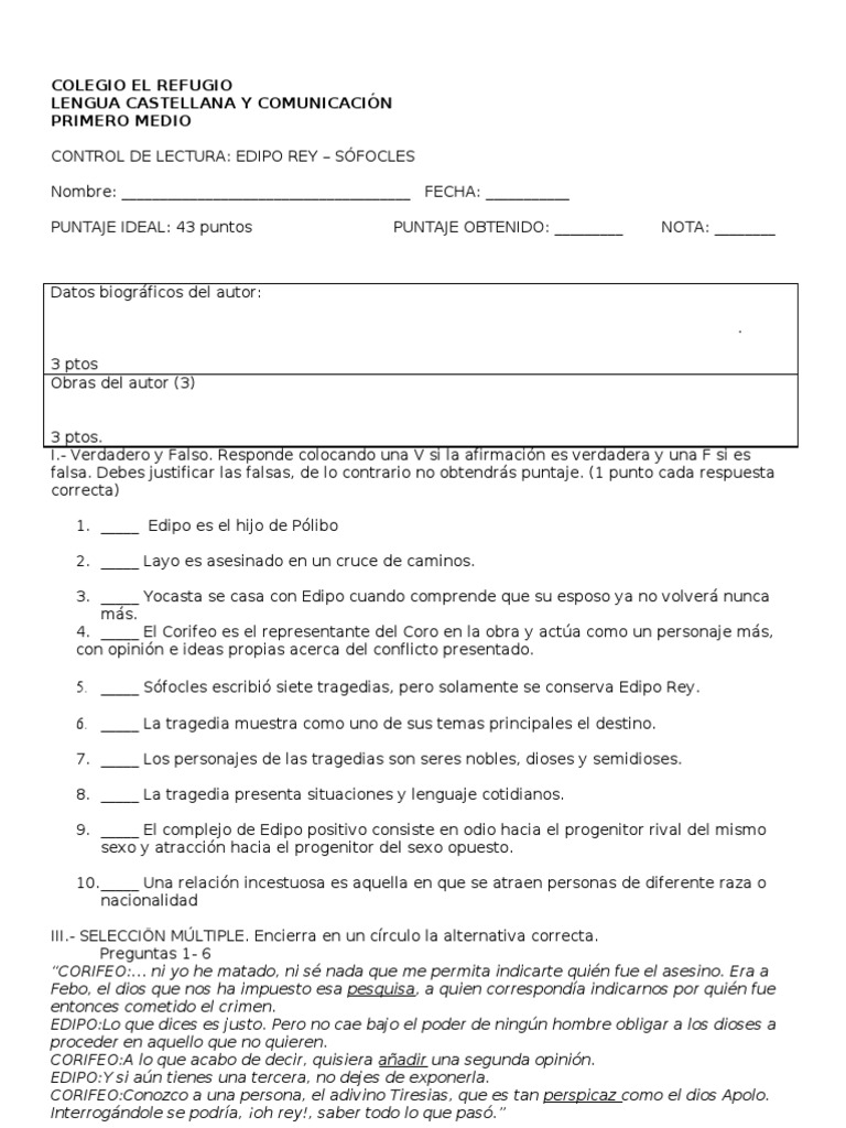 Preguntas Y Respuestas De Edipo Rey. Completa el siguiente fragmento sobre la introducción crítica de edipo rey: ¿qué fecha tiene la obra?
