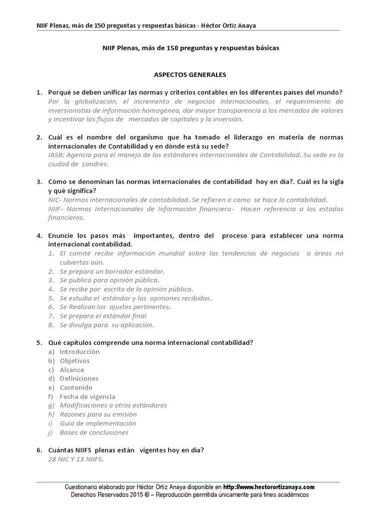 Preguntas Y Respuestas Niif Para Pymes. En sesión del consejo de vigilancia de la profesión de la contaduría pública, celebrada el. Responda las preguntas a continuación y ponga así a prueba su conocimiento acerca de los requerimientos de contabilización e información sin embargo, en esta pregunta, la vida económica restante de la máquina es de 30 años y la cuota por arrendamiento es de 23.000 u.m.