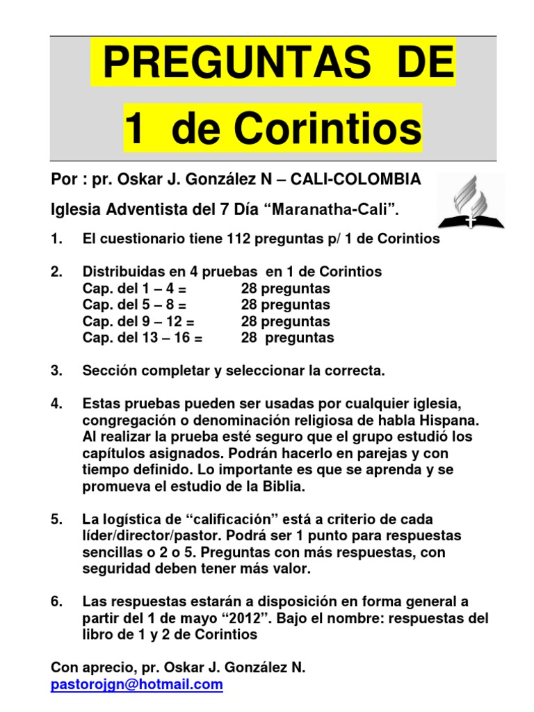 Final Cuestionario J I 2012 from image.slidesharecdn.com Se les da a los cristianos corintios un buen recordatorio que también es bueno para nosotros: Muchos de los problemas y preguntas con las que estaba luchando la iglesia en el amor genuinamente cristiano es la respuesta a muchos problemas (capítulo 13). Ejercicios para practicar y aprender como hacer preguntas en español.