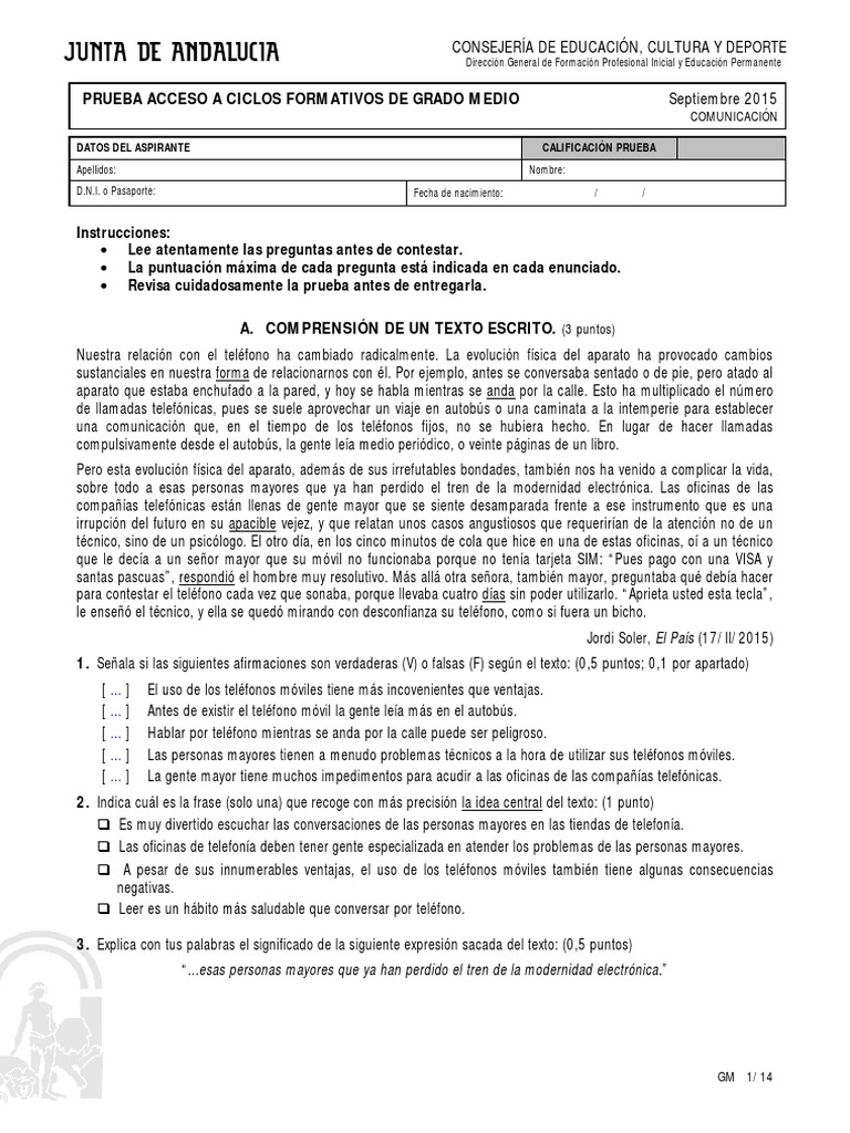 Información sobre la prueba de acceso a grado superior en las diferentes comunidades autónomas. Tener como mínimo 17 años o cumplirlos en el año de realización de la prueba. Al grado medio suele accederse después de conseguir el título de la eso o bien después de haber cursado una fp básica, que está dirigida a todos en caso de querer mejorar la nota media adquirida en el grado superior, puede realizarse una prueba específica de la evau (evaluación de acceso a. La prueba de acceso a ciclos formativos de grado medio consta de tres exámenes, uno por cada uno de los tres ámbitos en que se divide: