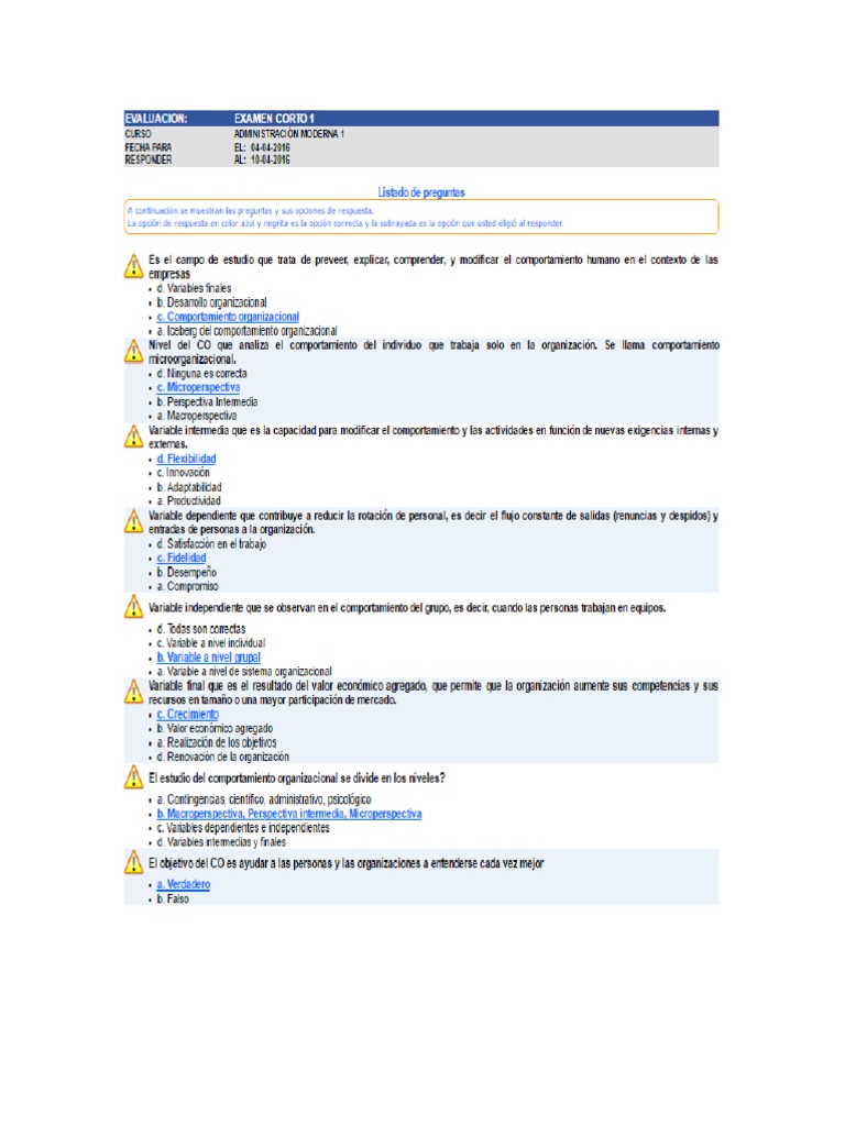 Cuestionario 7 Administracion Moderna. Marta aneth pérez coro horario: Cuestionario capitulo numero 3 administracion moderna.