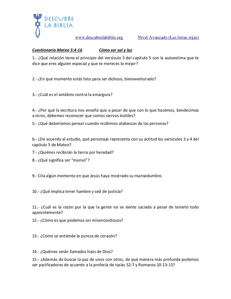 Mateo 6 Preguntas Y Respuestas. 6:07 andresxd 123 ツ 267 просмотров. Algunos judíos confiaban en sus hechos.¡las intenciones de estas acciones era el fluir del amor a dios, su palabra y sus hermanos y hermanas del.