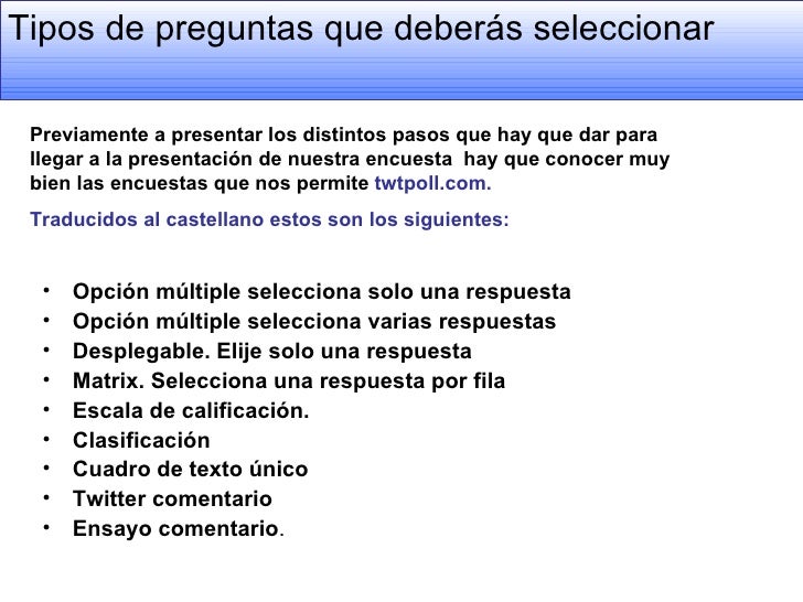¿está creando una encuesta, sondeo u otro tipo de formulario? Mediante la encuesta se obtienen datos de interés sociológico interrogando a los miembros de un colectivo o de una población. iniciar un nuevo cuestionario. Easypromos te ofrece una plataforma flexible, robusta y 100 la aplicación ha sido diseñada para que los cuestionarios funcionen en todos los tipos de accede al editor de cuestionarios para añadir tantas preguntas como necesites, definir el mejor layout para.