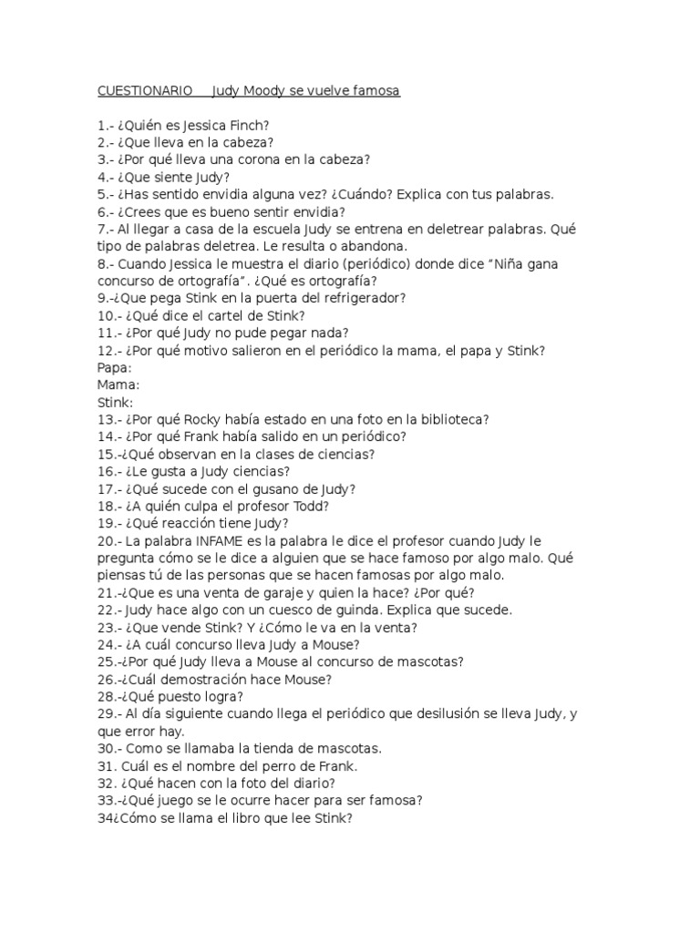 Preguntas Prueba Judy Moody Se Vuelve Famosa. Libro judy moody se vuelve famosa cuando judy llega a clase y ve la foto de jessica finch la sabelotodo en el periódico se pone furiosa. Judy moody entró muy decidida en clase, como cualquier otro día, de un humor ni fu ni fa… hasta que se encontró con la ganadora del concurso.