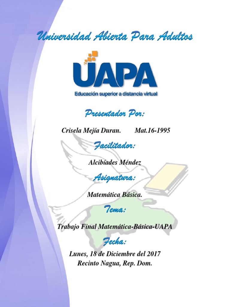 Cuestionario 6 De Matemática Básica Uapa. Tarea 6 de matemática básica. Documentos similares a tarea 6 de matemática basíca.docx.