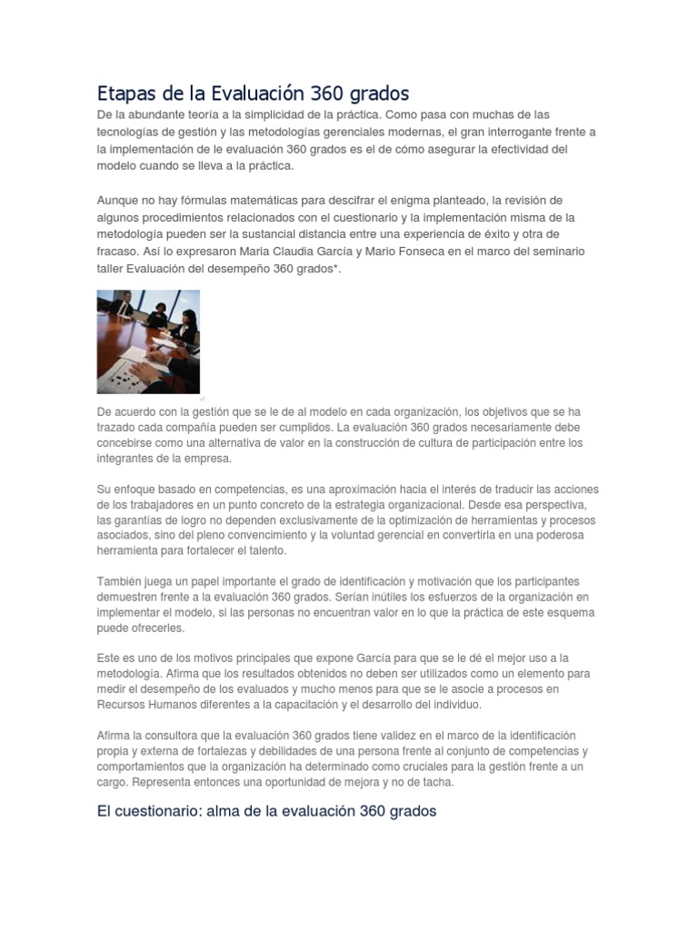 El sistema de evaluación de 360 grados llamado también evaluación integral es utilizado principalmente para medir el desempeño del capital humano y es importante que el cuestionario esté diseñado de la manera más precisa para obtener la información que se requiere, sin embargo. Es una revisión completa y constructiva que mide y da cuenta de las fortalezas y debilidades de los trabajadores. ¿cómo saber si tus preguntas están arrojando la. El sistema de evaluación de 360 grados llamado también evaluación integral es utilizado principalmente para medir el desempeño del capital humano y es importante que el cuestionario esté diseñado de la manera más precisa para obtener la información que se requiere, sin embargo.