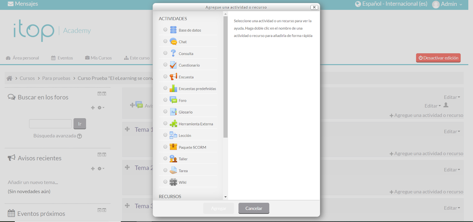 3º creación de un examen o actividad con calificación: