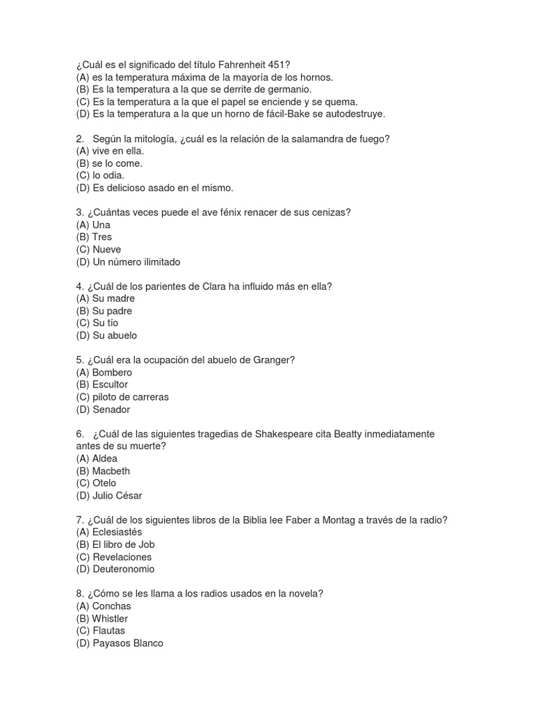 Fahrenheit 451 Preguntas De Prueba. Cuide su ortografa, redaccin y. Control de lectura fahrenheit 451 segundo medio fila a.
