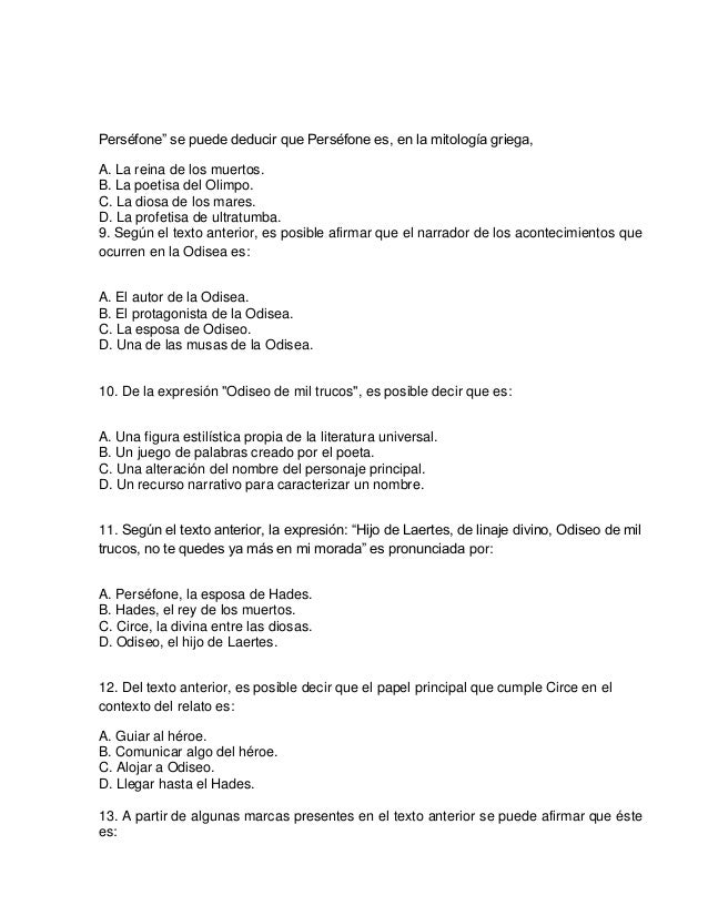 Consulta más recursos educativos para aprender español básico, materiales ele para profesores y estudiantes de. Un fragmento de la odisea.b. Banco de preguntas sobre homero, sus producciones y literatura documents similar to mio cid preguntas y respuestas.docx. Homero fue el autor de este poema de 24 cantos.
