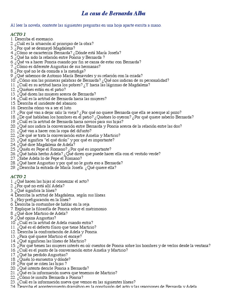 Preguntas De Examen La Casa De Bernarda Alba. ¿qué advierte el autor bajo el título y subtítulo de 27. La casa de bernarda alba es una obra teatral en tres actos escrita en 1936 por federico garcía lorca.