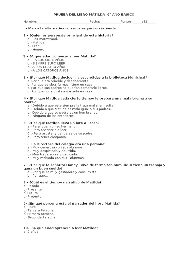 Prueba De Matilda Preguntas Y Respuestas. Sin embargo, hay ciertas preguntas que todavía podrías contestar, si te gustan este tipo de retos. Formas de pago y envío.