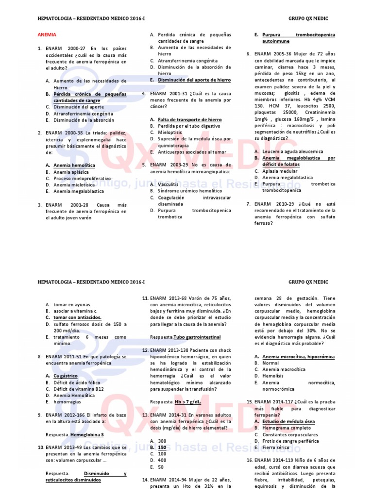 Preguntas De Examen Hematologia. Actualizadas con las respuestas oficiales provisionales del ministerio. Examen mir convocatorias mir graduados.