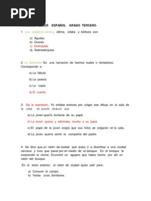 Pruebas Saber Espanol Grado Tercero Palabra Oracion Linguistica from imgv2-1-f.scribdassets.com Test de nivel de español. Esta prueba de español en línea, consiste en 40 preguntas de lenguaje desarrollada para estudiantes de español o personas que quieran progresar. Prueba español responda las preguntas 1 a 7 de acuerdo con la siguiente imagen.