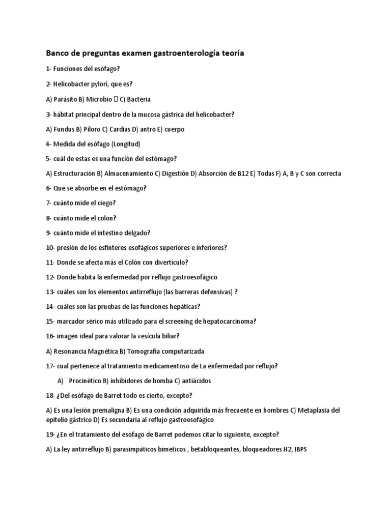 Preguntas De Examen Gastroenterologia. Preguntas de repaso de gastroenterologia myc enarmdescripción completa. Nuestro equipo de atención al cliente está aquí para responder sus preguntas.
