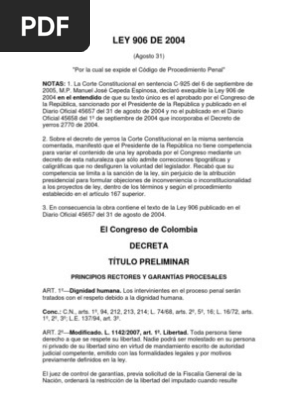 Codigo Penal Ley 906 De 2004 Pdf Derecho Penal Ley Procesal