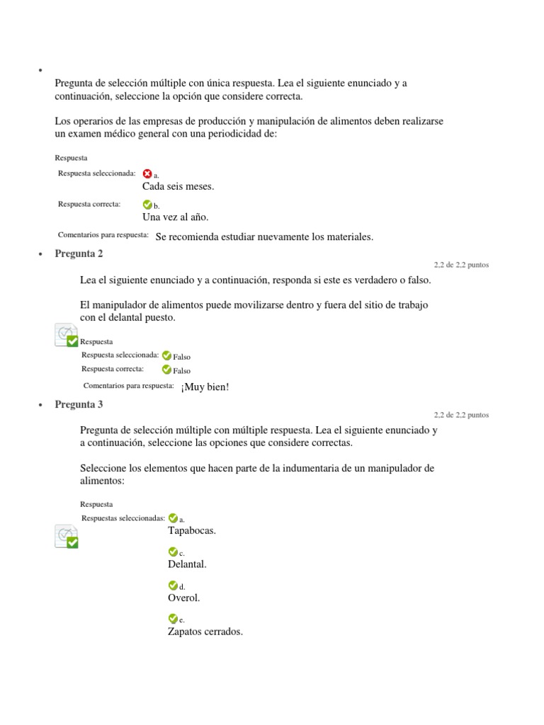 Para aprobar necesitar tener la mitad de respuestas correctas. Consigue tu certificado y carnet de manipulador de alimentos válido para todo el territorio nacional. Balotario de preguntas en inocuidad alimentaria. El término manipulador de alimentos se refiere a toda persona que por su actividad laboral tiene contacto directo con los alimentos durante su preparación, fabricación, transformación, elaboración, envasado, almacenamiento, transporte, distribución, venta, suministro y servicio.