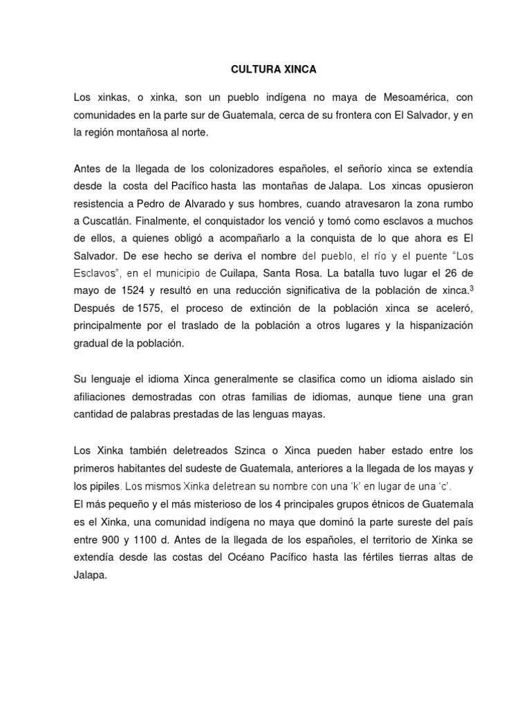 La Cultura Xinca Sociologia De Guatemala Sociologia De Guatemala Studocu