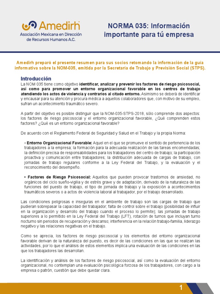 Si quieres conocer más preguntas hechas al respecto tenemos aquí el video del Taller de preguntas y respuestas sobre la NOM-035 que dieron nuestros expertos en implementación y consultoría sobre clima laboral y NOM-035. Preguntas frecuentes sobre la NOM-035.