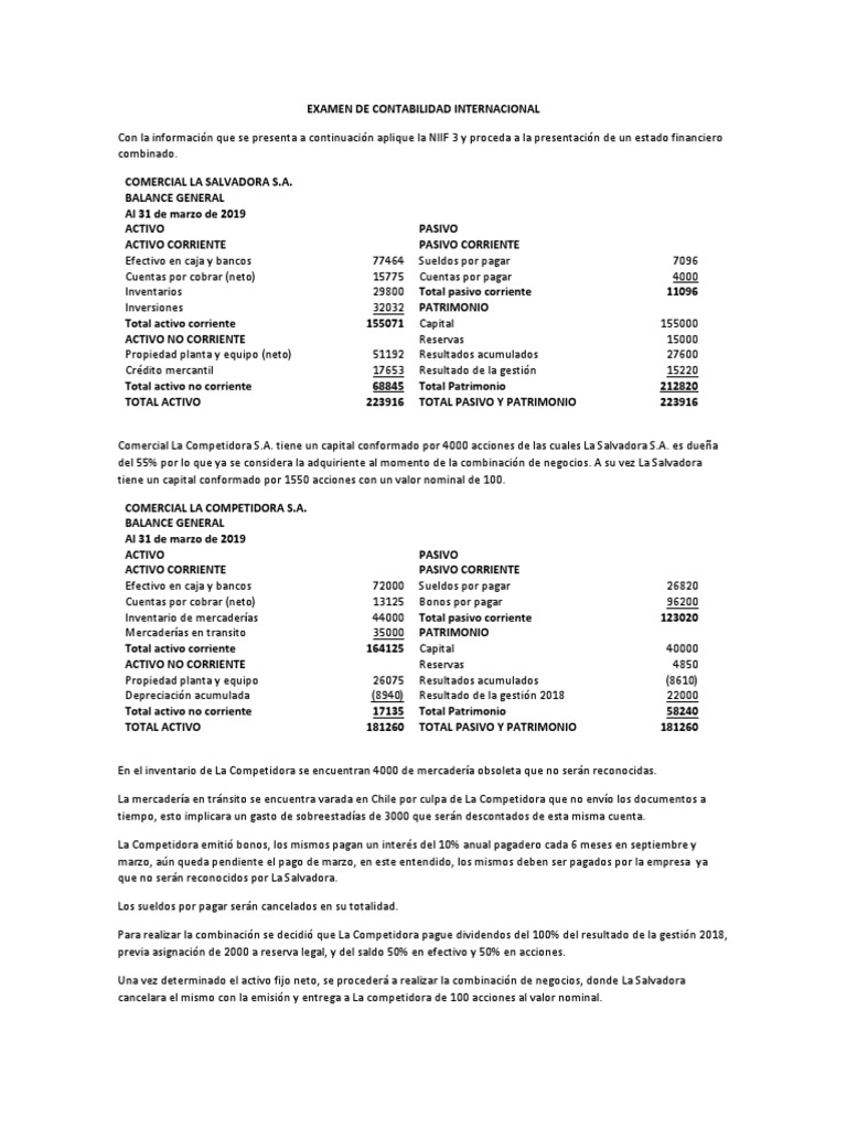 Examen Niif 3 Pdf Compartir Finanzas Activo Fijo