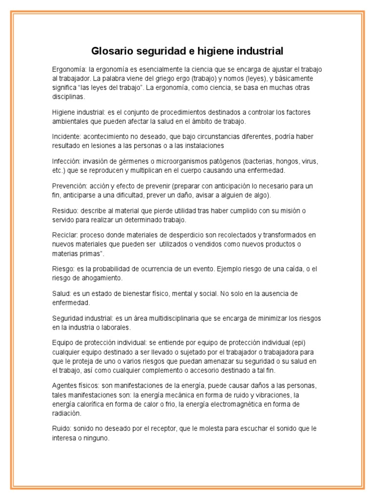 Glosario Seguridad E Higiene Industrial Pdf Seguridad Y Salud Ocupacional Virus