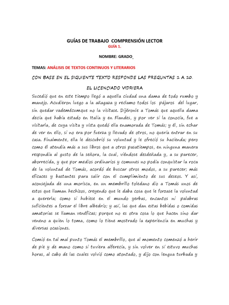 Comentario Libre De La Novela El Licenciado Vidriera Docsity