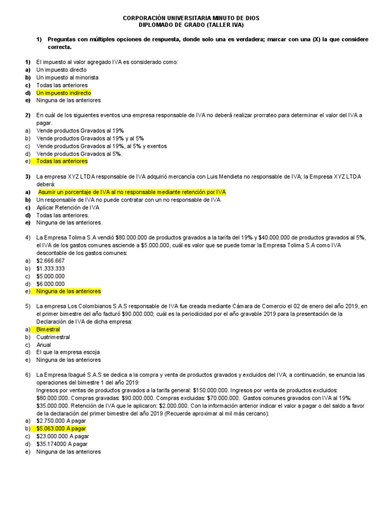 Taller Prorrateo Y Teorico 1 Impuesto Al Valor Agregado Impuestos