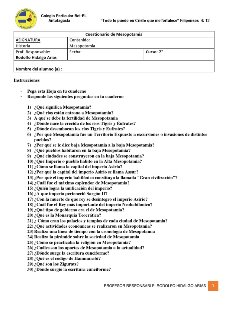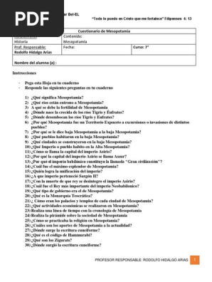 Cuestionario De Mesopotamia Pdf Mesopotamia Asiria