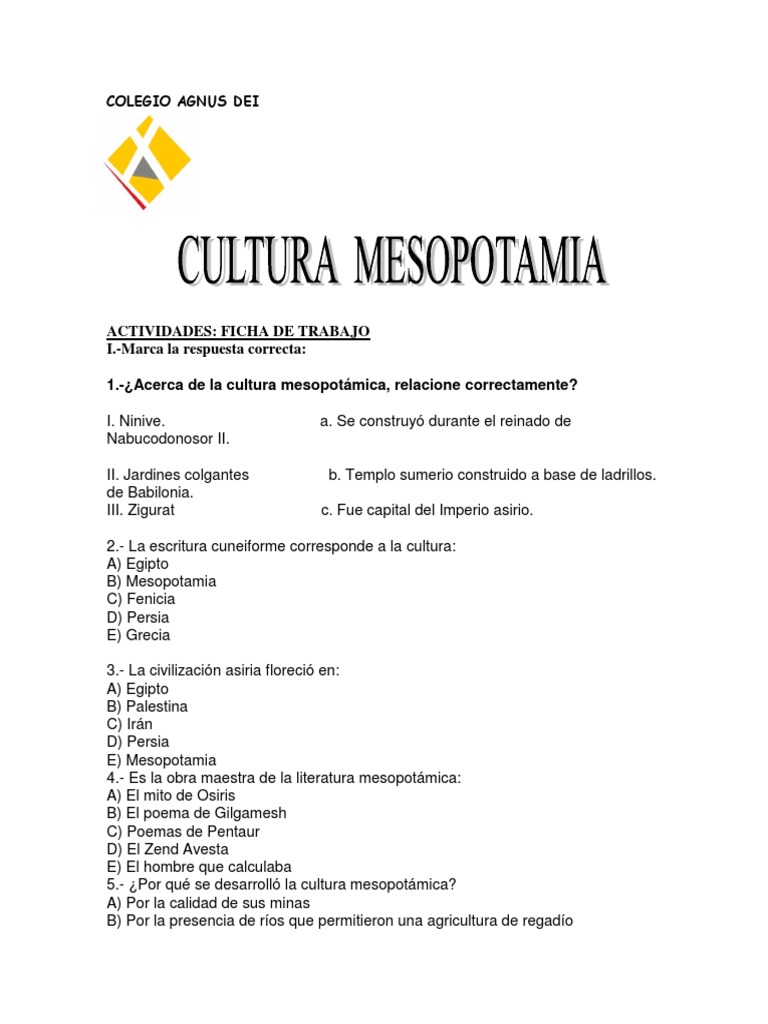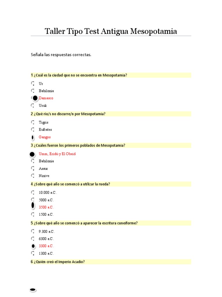 Taller Tipo Test Antigua Mesopotamia Respuestas Pdf Mesopotamia Asiria
